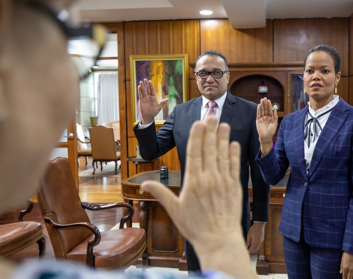 Los nuevos procuradores adjuntos José Vitervo Enrique Cabral González e Isis Germania de la Cruz, quienes forman parte de la Carrera del Ministerio Público, fueron juramentados por la procuradora general de la República, Miriam Germán Brito.
