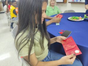 En el cierre de la celebración,  los asistentes compartieron alimentos tradicionales cargados de significado auspicioso, como la piña, asociada a la prosperidad; el pastel de año nuevo, símbolo de progreso, y las empanadillas chinas, relacionadas con la abundancia, reforzando el sentido de comunidad.