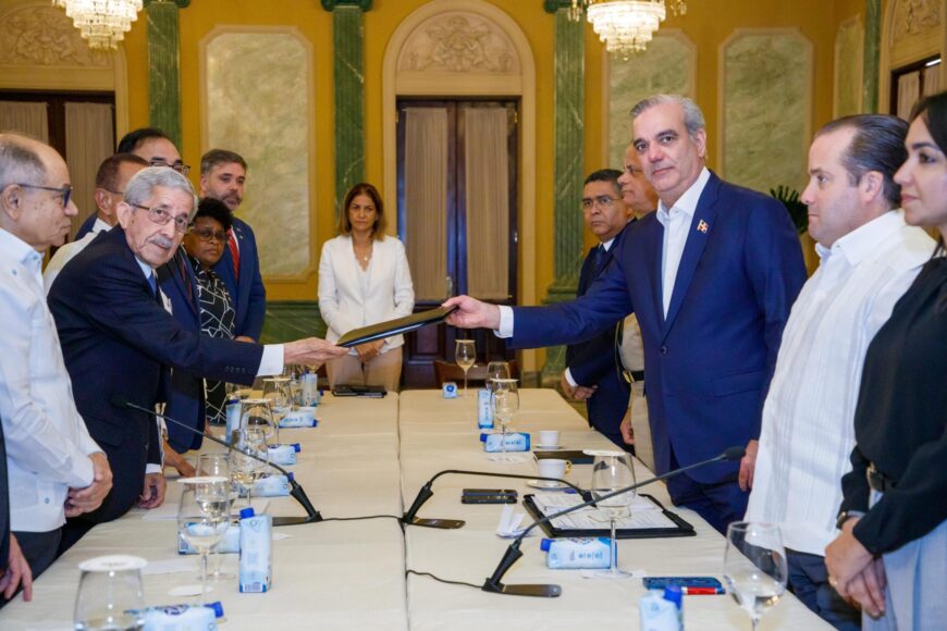 El mandatario recibió de manera formal la versión física original del documento, junto a una memoria USB que contiene el informe y las seis últimas actas de cada mesa temática. El presidente Abinader valoró el esfuerzo de concertación y el compromiso de los sectores nacionales para aportar soluciones responsables frente a la crisis haitiana.
