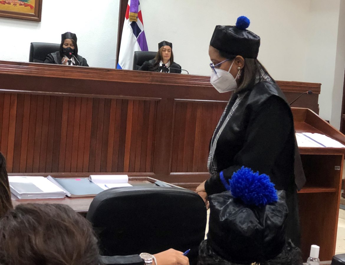 Las juezas Claribel Nivar Arias (presidenta), Yissel Soto y Clara Sobeida Castillo conocen las pruebas aportadas al proceso por el Ministerio Público.