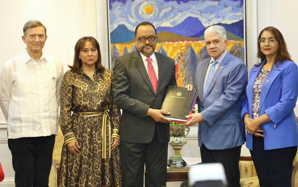 Por parte del Senado recibieron las iniciativas de ley además de Eduardo Estrella, la secretaria del bufete directivo del Senado, Lía Díaz y el senador de Pedernales y vocero de la Fuerza del Pueblo, Dionis Sánchez.