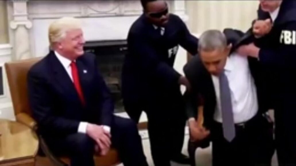 Refiere la información, que la secuencia manipulada parece basarse en imágenes de una reunión real ocurrida en noviembre de 2016 entre ambos mandatarios, la cual ha sido alterada mostrando a agentes del FBI irrumpiendo en la sala, y obligando a Obama a arrodillarse y colocándole esposas, mientras Trump observa sonriente, y se escucha de fondo la canción “Y.M.C.A.” de la banda estadounidense, Village People.